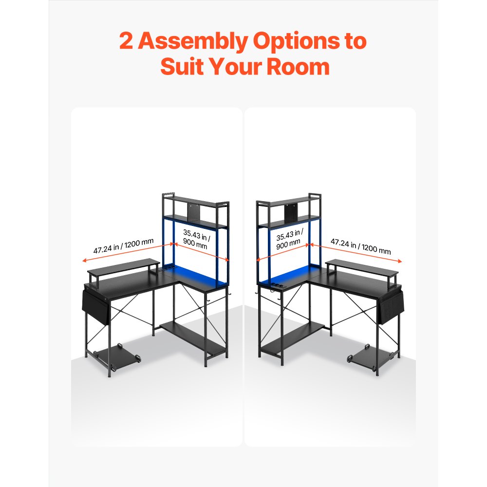 Rewersyjne biurko w kształcie litery L: Zmaksymalizuj przestrzeń w narożniku dzięki rewersyjnemu biurku gamingowemu w kształcie litery L od VEVOR. Dzięki dwóm opcjom montażu, biurko z łatwością dopasowuje się do różnych układów pomieszczenia i idealnie sprawdza się jako biurko gamingowe, komputerowe lub stanowisko pracy w domowym biurze.