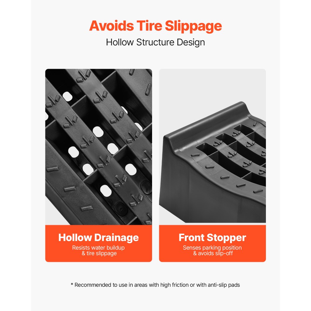 Specjalna konstrukcja: Nasze rampy do wymiany oleju posiadają powierzchnię o strukturze plastra miodu, która zwiększa tarcie i poprawia odprowadzanie wody, redukując gromadzenie się wilgoci i poślizg opon. Zakrzywiony kształt pewnie dopasowuje się do opony, zapewniając stabilność i stabilność pojazdu.