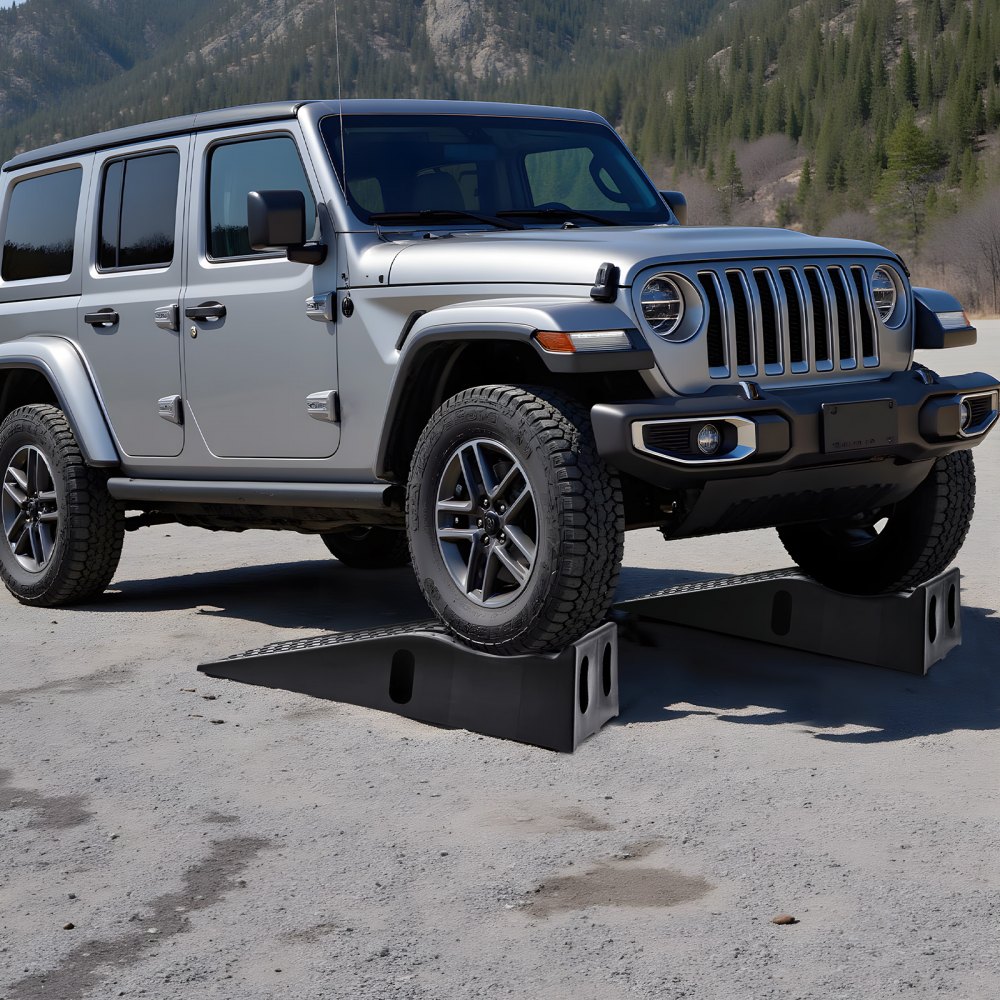 Odpowiednie dla pojazdów z dużym prześwitem: Dzięki wysokości podnoszenia 6,1 cala (15,5 cm) i kątowi nachylenia 17°, podnośniki te idealnie nadają się do pojazdów z dużym prześwitem, takich jak średniej wielkości SUV-y, ciężarówki i jeepy. Podwyższona konstrukcja zapewnia duży prześwit, zapobiegając jednocześnie zarysowaniom podwozia.