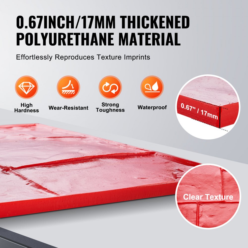 Mata do stempli betonowych VEVOR, 24 x 24 cale, faktura betonu, stempel poliuretanowy, mata o fakturze płytek kamiennych, odcisk podłogi łupkowej, stempel bezszwowy, formy betonowe do dekoracji zewnętrznych, czerwony