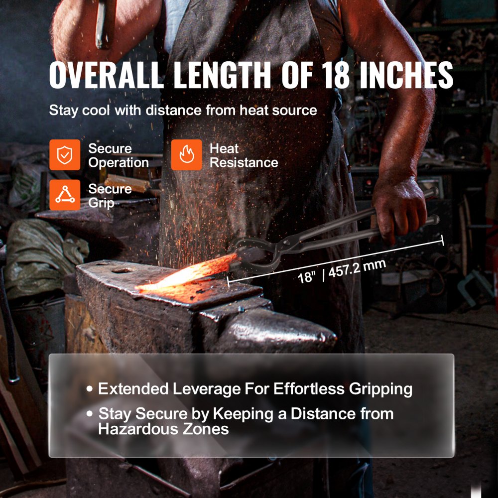 Wydłużona długość całkowita: Unikalnie zaprojektowana, długa rękojeść szczypiec kowalskich zapewnia bezpieczeństwo, chroniąc użytkownika przed źródłami ciepła. Poczuj różnicę i pracuj bezpiecznie i precyzyjnie, bez obaw o oparzenia czy ból.