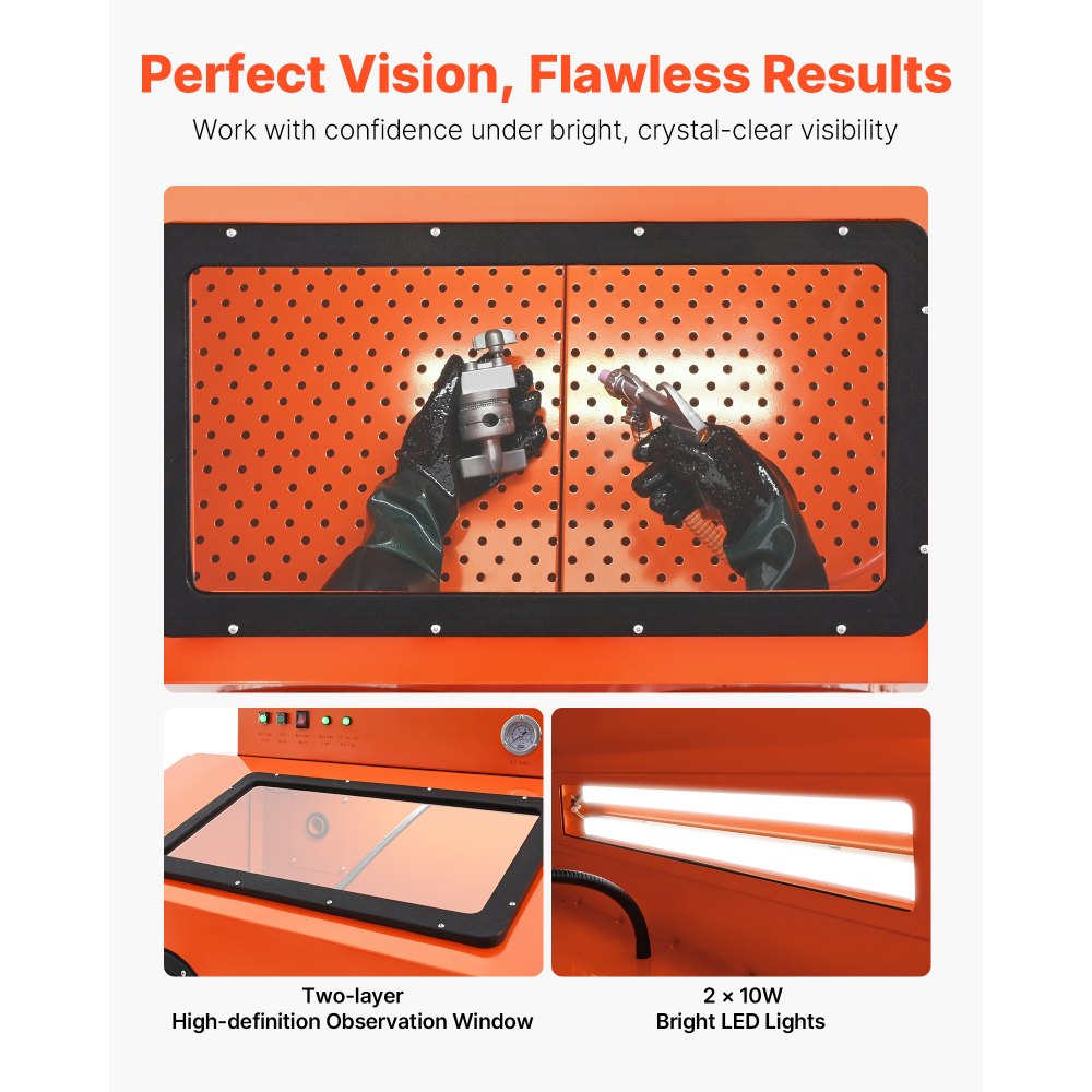 Kabina do piaskowania VEVOR 435 l, jednostka piaskarska z pojemnikiem na ścierniwo o pojemności 117 l, dwoma pistoletami do piaskowania i odciągiem pyłu o mocy 1,6 KM do obróbki powierzchniowej części o dużych gabarytach i usuwania rdzy - Narzędzia elektryczne | Galaxy Sklep