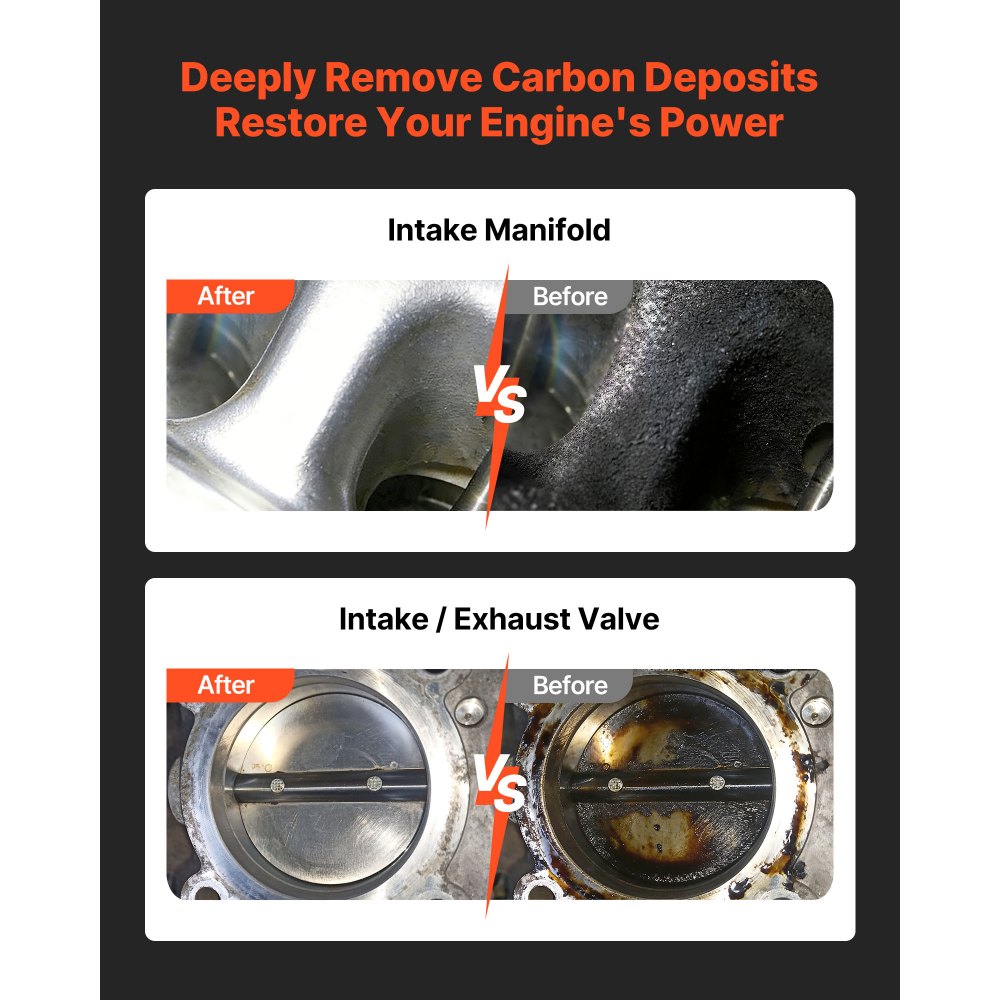 Duża pojemność i wysoka wydajność: Wyposażona w 13-litrowy zbiornik ze stali nierdzewnej i mocny silnik o mocy 1200 W, oczyszczarka VEVOR do orzechów włoskich umożliwia ciągłe czyszczenie bez częstego uzupełniania. Idealna do bezpiecznego usuwania osadów węglowych z zaworów dolotowych i kolektorów dolotowych.