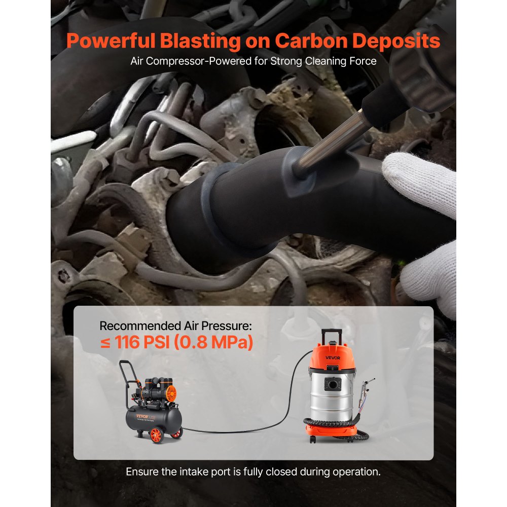 Wydajniejsze śrutowanie: System śrutowania VEVOR do drewna orzechowego do czyszczenia węglowego automatycznie zbiera i filtruje zużyte ścierniwo podczas procesu śrutowania. To nie tylko upraszcza konserwację silnika z bezpośrednim wtryskiem, ale także zapewnia płynny i nieprzerwany przepływ pracy.