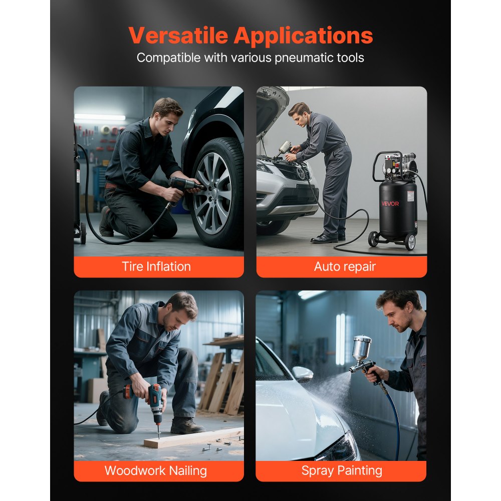 Kompresor powietrza VEVOR 50L, 2 KM, 113 l/min przy ciśnieniu 6,2 bara, maks. ciśnienie 8 barów, zbiornik bezolejowy, idealny do napraw samochodowych, pompowania opon, malowania, obróbki drewna i wbijania gwoździ - Narzędzia pneumatyczne i kompresory | Galaxy Sklep
