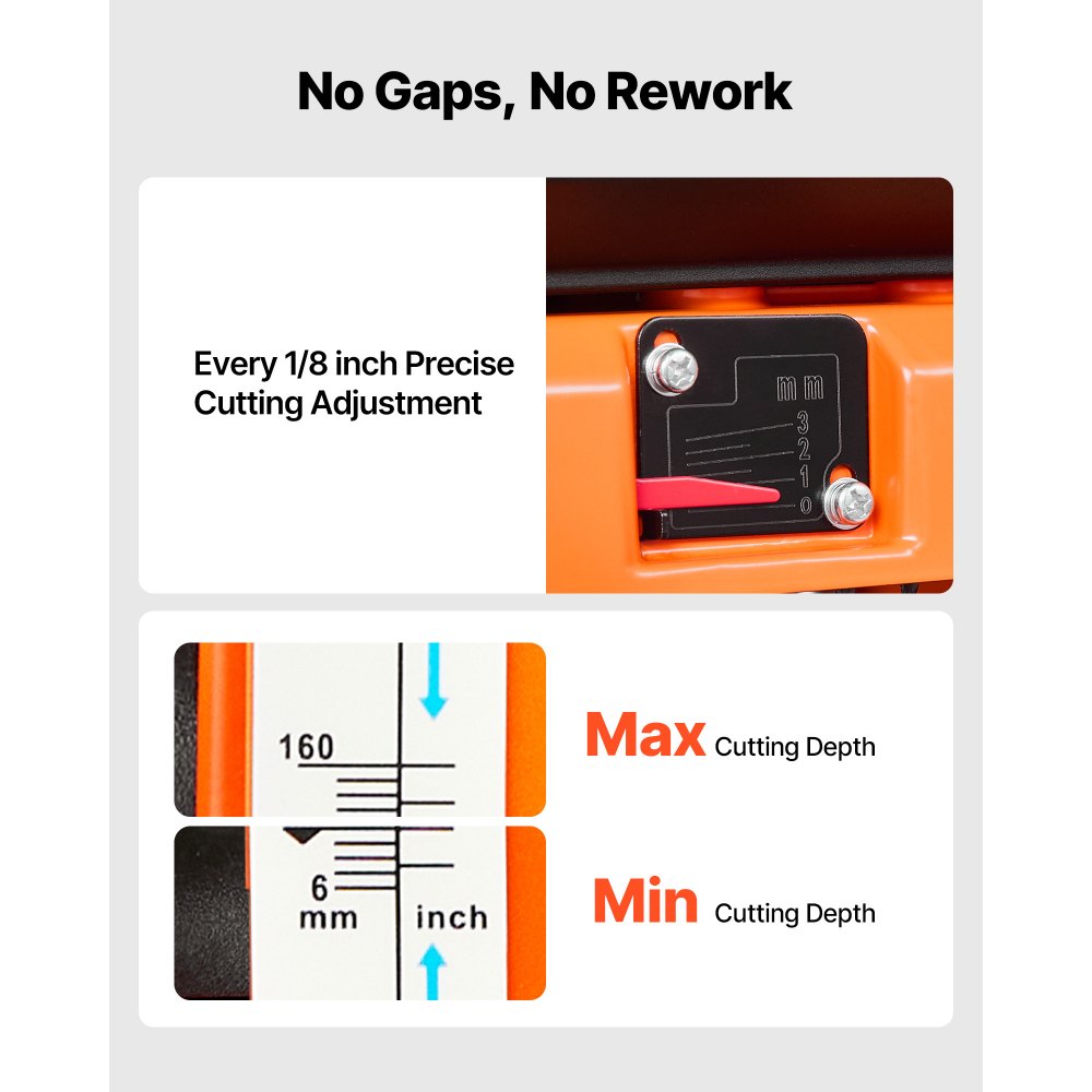 Precyzyjna regulacja głębokości cięcia co 1/8 cala: Regulacja głębokości cięcia z dokładnością do 1/8 cala i milimetra zapewnia powtarzalne rezultaty. Ta strugarka do drewna idealnie nadaje się do projektów o dużej objętości, wymagających powtarzalnych rezultatów.