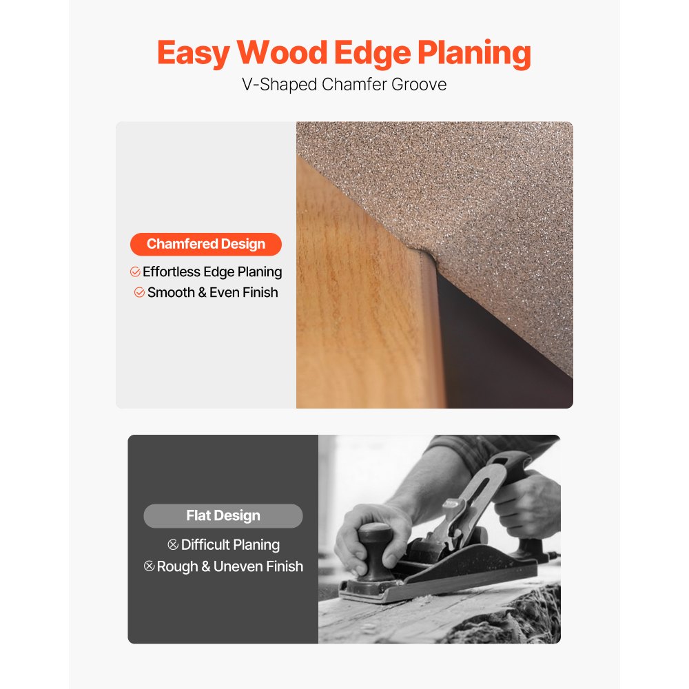 Precyzyjne fazowanie: Dzięki zintegrowanym rowkom fazującym, elektryczna strugarka ręczna z łatwością struga krawędzie desek i szybko uzyskuje gładki, płaski efekt fazowania. Pożegnaj się z szorstkimi, nierównymi krawędziami.