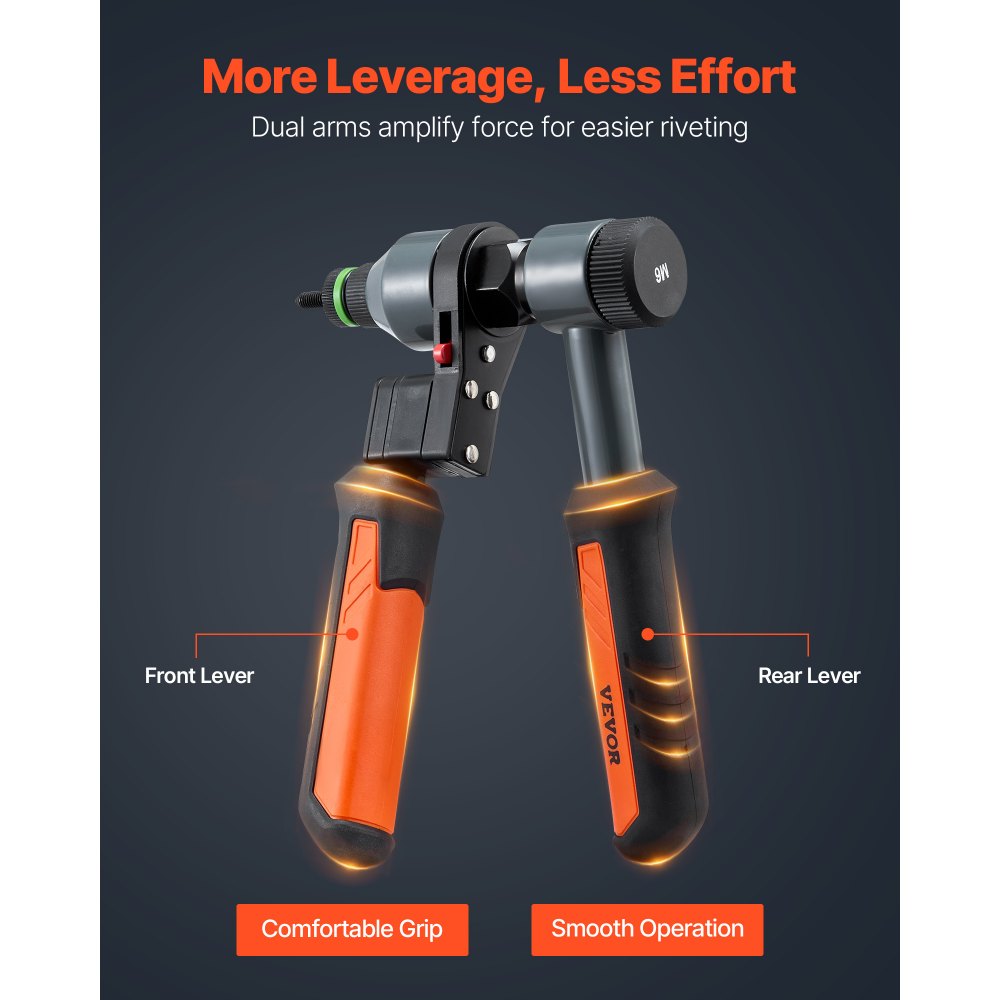 Wszechstronne zastosowanie: Ten zestaw narzędzi do nitowania nakrętek nadaje się do nitowania aluminium, stali, stali nierdzewnej i innych materiałów, a także charakteryzuje się niezawodną wydajnością. Idealny do napraw metalu, instrumentów, mebli, drzwi i innych projektów DIY.