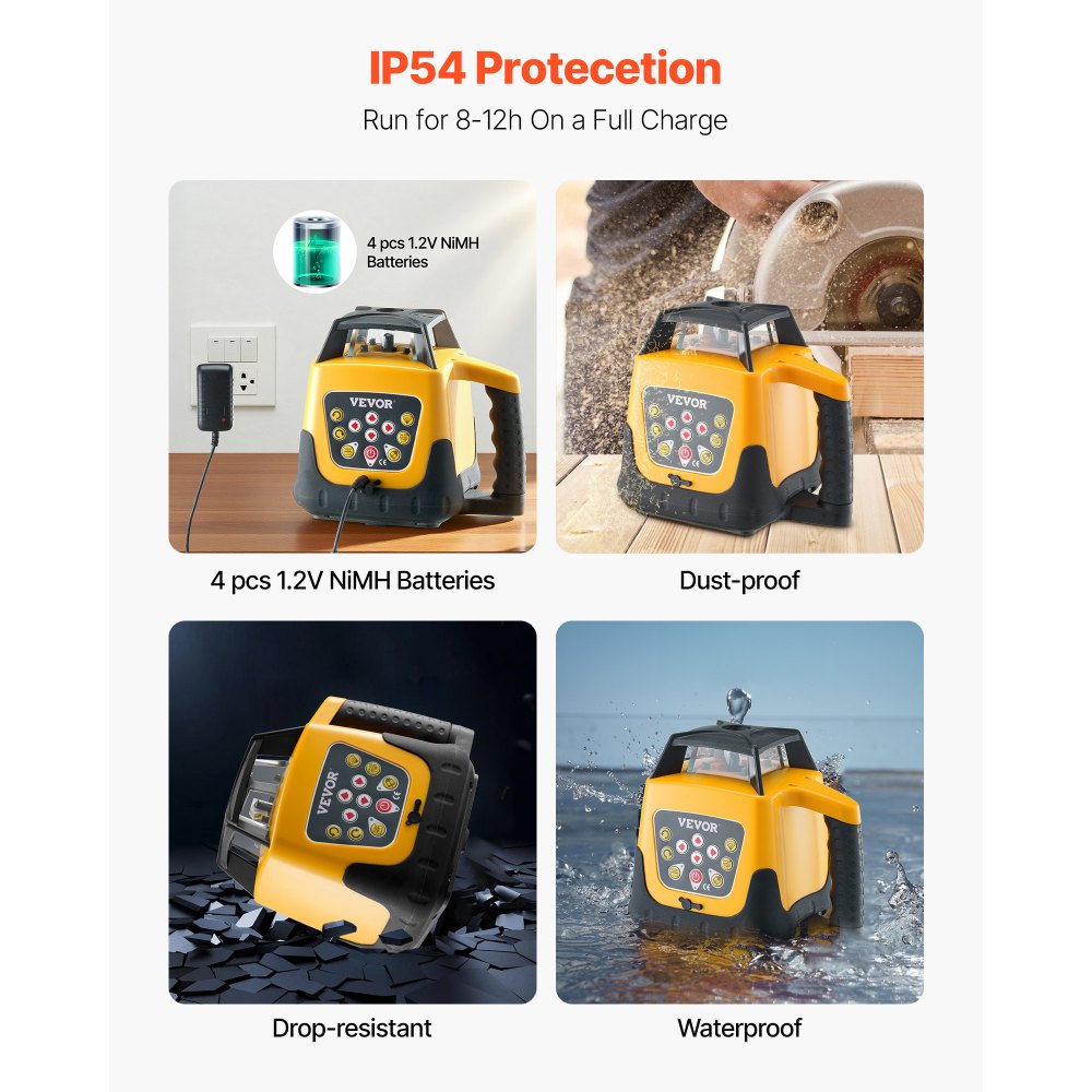 Wysokiej jakości materiał: Nasz przyjazny dla użytkownika laser obrotowy zapewnia absolutne bezpieczeństwo dzięki stopniowi ochrony IP55. Wytrzymała, odporna na uderzenia obudowa kompozytowa chroni mechanizm wewnętrzny przed wodą i pyłem, zapewniając tym samym długą żywotność.
