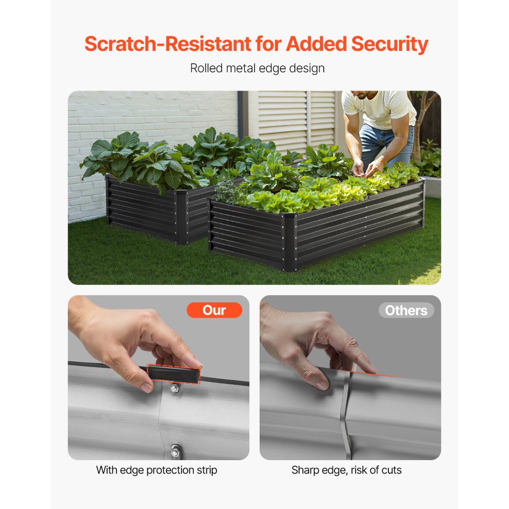 Bezpieczne użytkowanie: Aby zapewnić bezpieczeństwo podczas użytkowania, nasza podwyższona donica ma zaokrąglone krawędzie z ochraniaczami, które zapobiegają urazom dłoni i zadrapaniom. Korzystaj z niej bez obaw i ciesz się ogrodnictwem bez wysiłku.