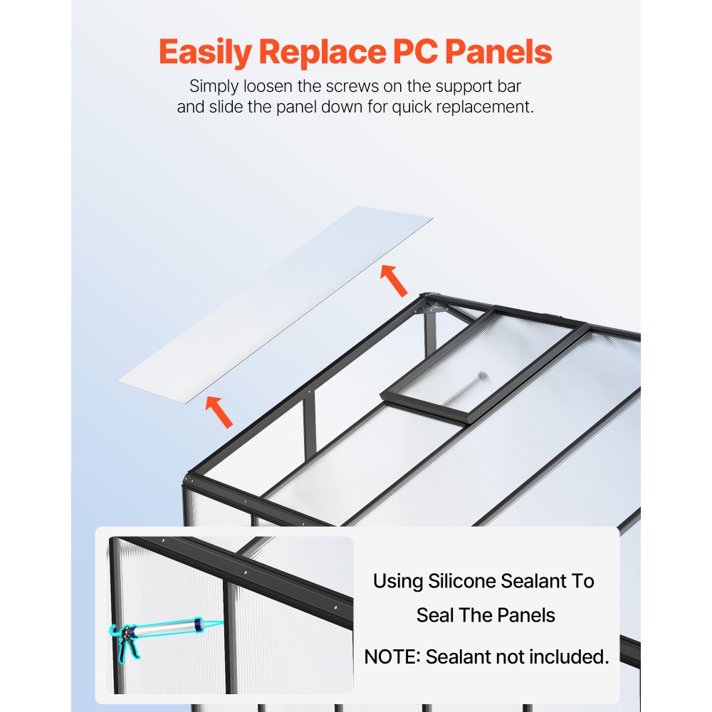 Szklarnia poliwęglanowa VEVOR, 236x402,5x207 cm, szklarnia zewnętrzna z 2 oknami wentylacyjnymi, pawilon z drzwiami francuskimi, zestaw aluminiowej szklarni typu walk-in do ogrodu zewnętrznego - Ogród i trawnik | Galaxy Sklep