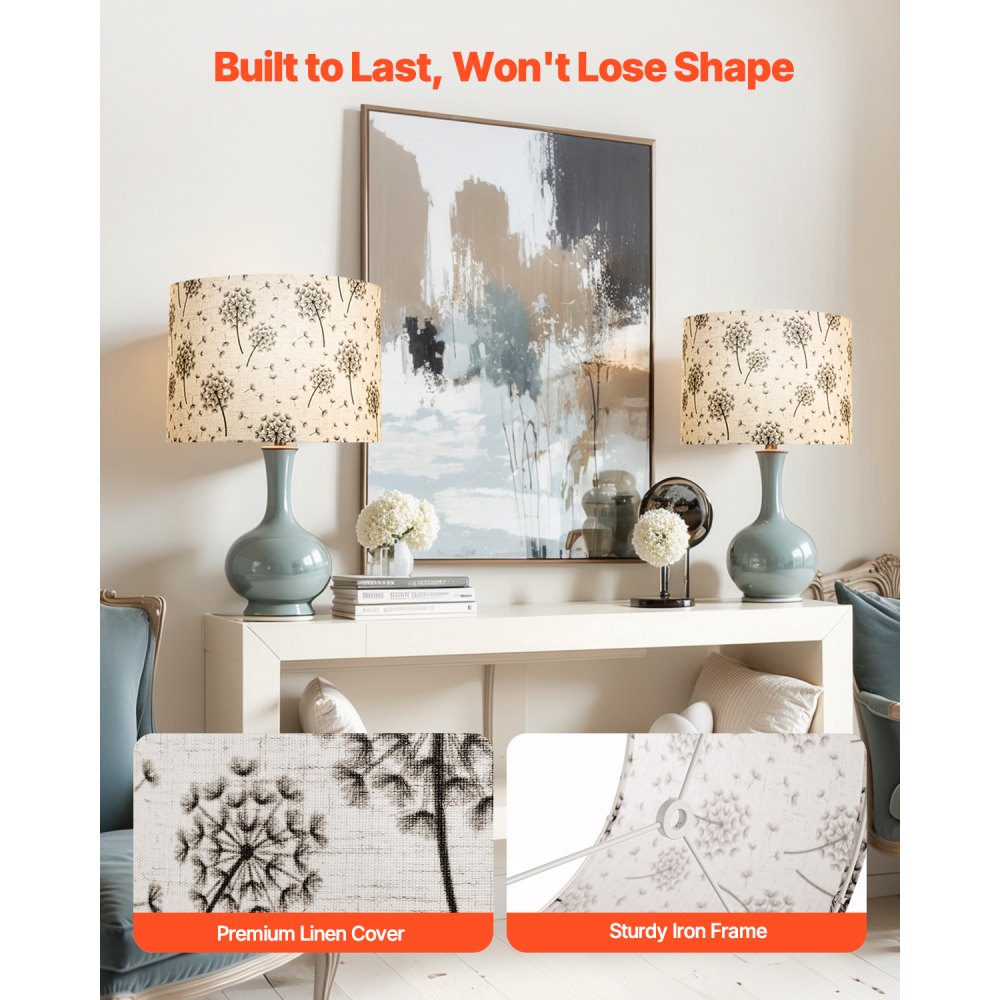 Abażur bębnowy VEVOR 33 x 33 x 25 cm (góra x dół x wysokość), 2 szt. średnich wymiennych abażurów z lnu i PVC, abażur do lamp stołowych, podłogowych i wiszących (wzór mniszka lekarskiego) - Oświetlenie | Galaxy Sklep