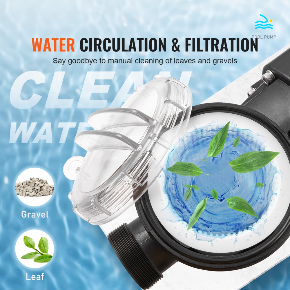 Pompa basenowa VEVOR, 2 KM, maks. przepływ 115 GPM, jednobiegowa pompa basenowa, 220 V, 2850 obr./min, maks. wysokość podnoszenia 15 m, pompa basenowa z koszem filtrującym, do basenów naziemnych, wanien z hydromasażem i jacuzzi - Pompy | Galaxy Sklep