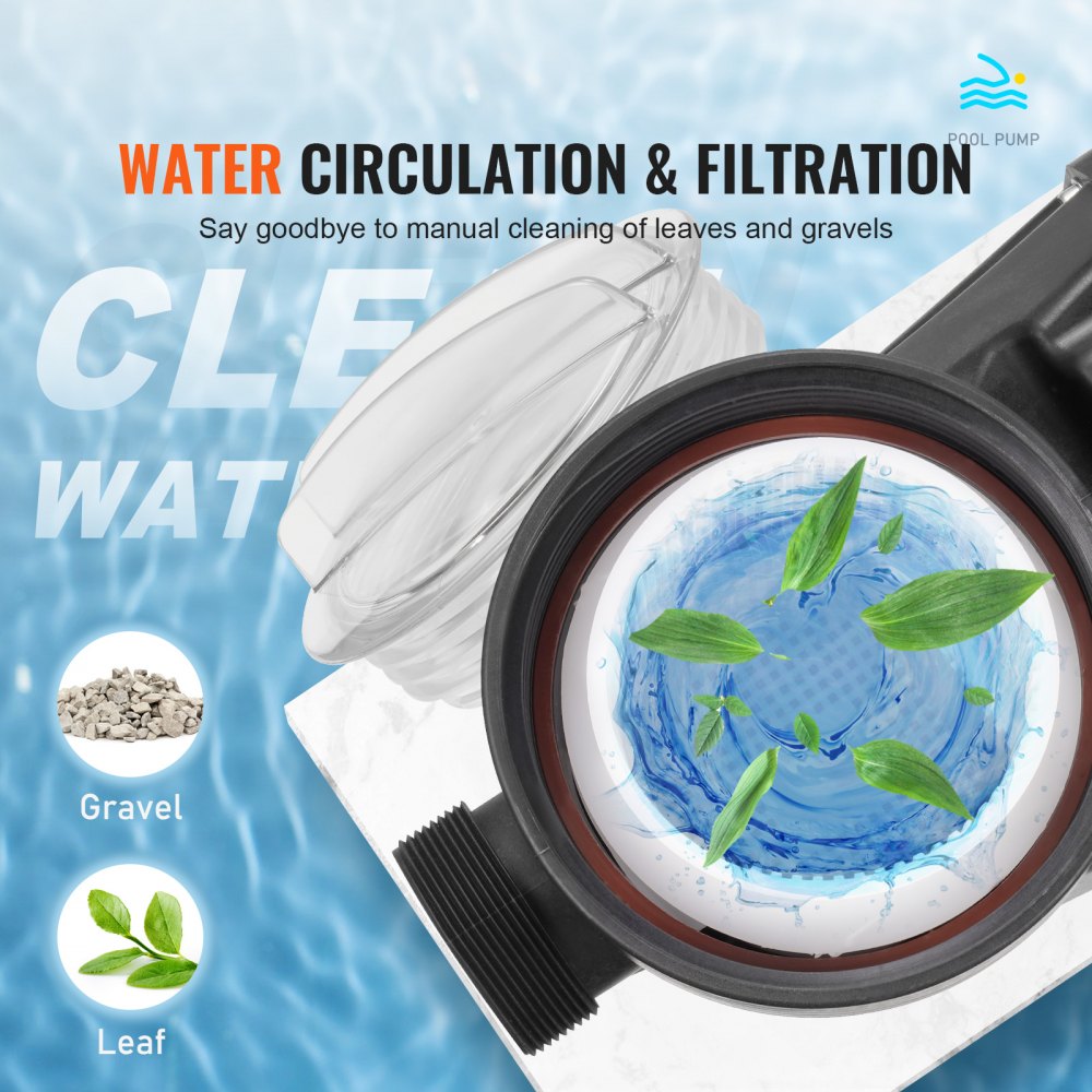 Pompa do basenów naziemnych VEVOR 1,5 KM, 220 V-240 V, 1450/2860 obr./min, pompa dwubiegowa, 1100 W, maks. przepływ 27800 l/h, wydajna pompa, energooszczędna pompa do basenów naziemnych, certyfikat CE - Pompy | Galaxy Sklep