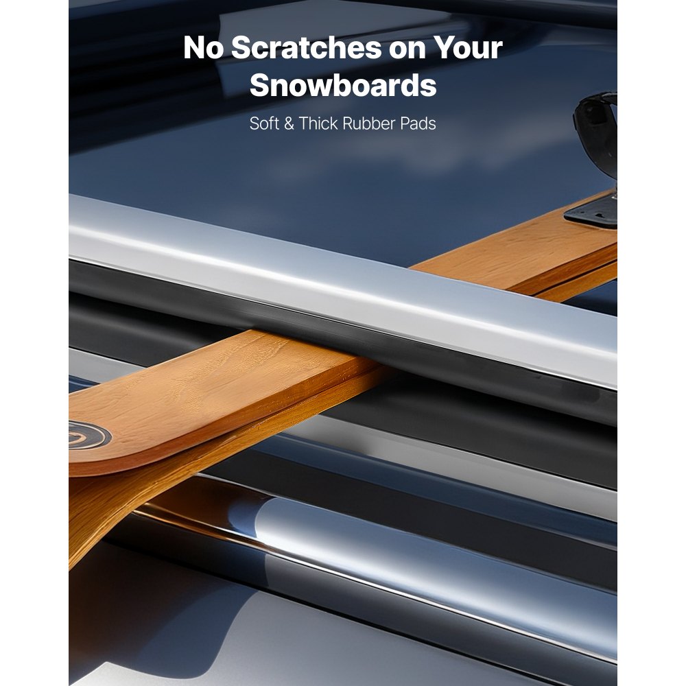 Transport bez zarysowań: Nasz bagażnik dachowy na narty wyposażony jest w miękkie, grube gumowe paski, które pewnie trzymają narty, zapobiegając zarysowaniom. Gumowe podkładki u góry i u dołu utrzymują narty na miejscu podczas transportu – gwarantując niezawodne przygody na świeżym powietrzu.