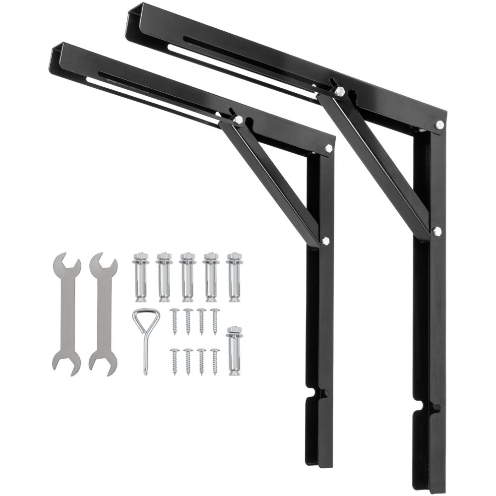 składane wsporniki półek, 613 x 254 x 48 mm, opakowanie 2 szt., wytrzymałe wsporniki półek pływających, podpory półek, matowoczarny, grubość 5 mm, wsporniki półek w kształcie litery L, stalowe podpory półek o nośności 136,1 kg - Sprzęt do magazynowania i obsługi | Galaxy Sklep