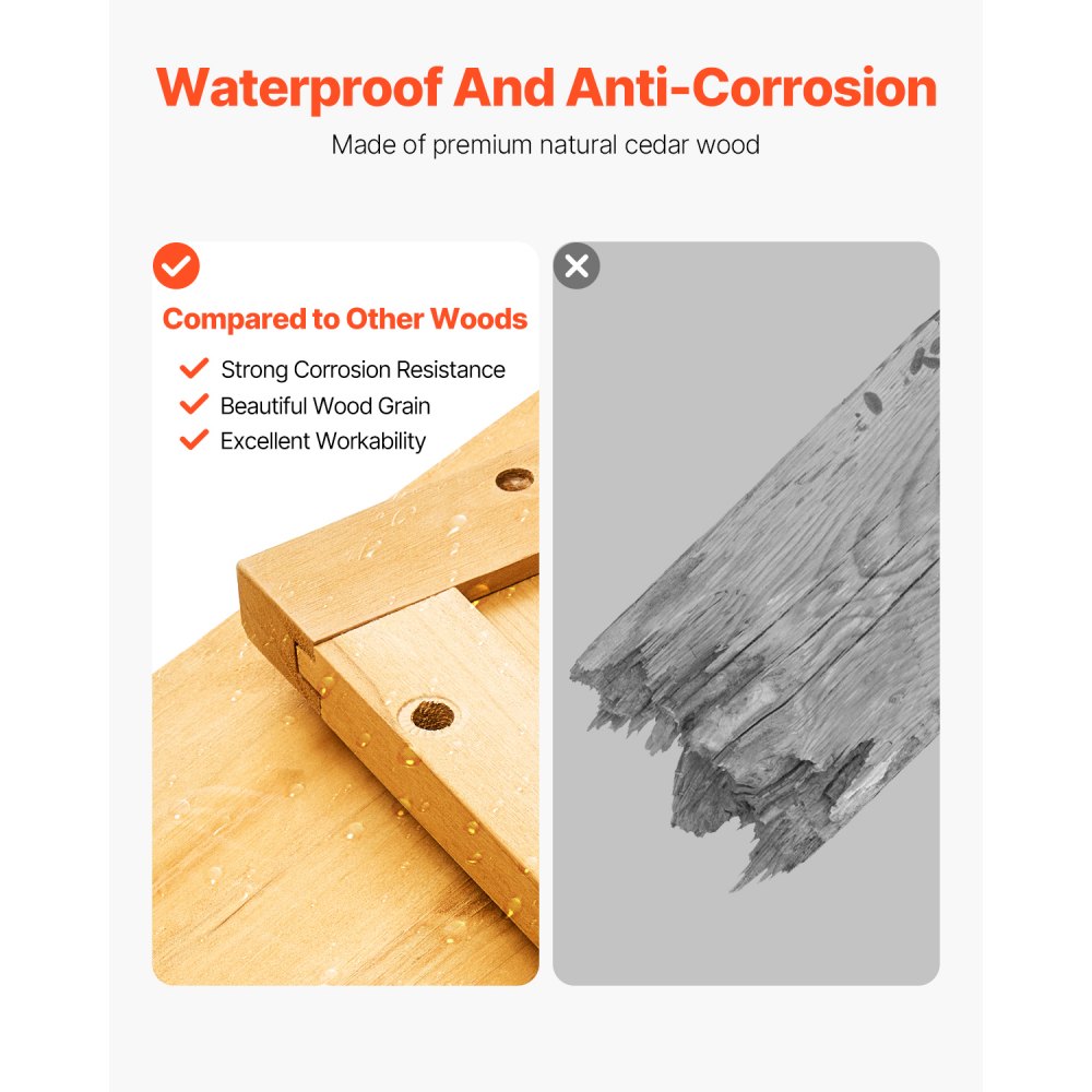 Solidna konstrukcja: Ta ogrodowa szopa ogrodowa wykonana jest z wysokiej jakości naturalnego drewna cedrowego i poddana obróbce zapewniającej doskonałą odporność na wodę i korozję. Zaawansowana konstrukcja zabezpieczająca skutecznie zapobiega przewróceniu się szopy i gwarantuje, że wytrzyma ona różne warunki klimatyczne, zapewniając długotrwałe użytkowanie.