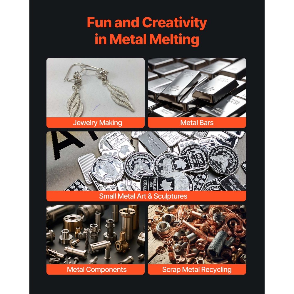Elastyczne możliwości rzemieślnicze: Zestaw pieca do topienia umożliwia tworzenie biżuterii, odznak i dzieł sztuki, a nawet ponowne wykorzystanie złomu w celu stworzenia unikatowych dzieł. Nadaje się do dużych, dobrze wentylowanych przestrzeni roboczych, oferując swobodę i wszechstronność w praktycznej pracy artystycznej.