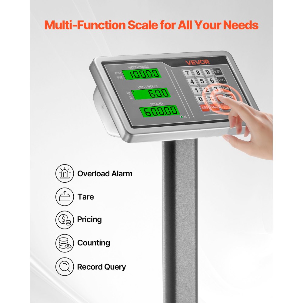 Łatwa obsługa: Czytelny wyświetlacz LCD i obsługa jednym przyciskiem ułatwiają ważenie. Dzięki zasilaczowi i akumulatorowi możesz elastycznie korzystać z naszej elektronicznej wagi platformowej w każdych warunkach.
