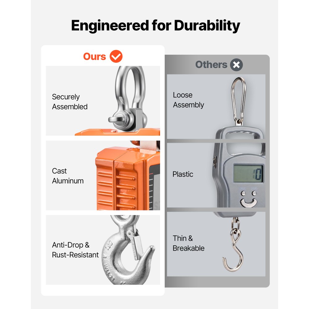 Waga dźwigowa VEVOR 2000 kg, cyfrowa waga wisząca, waga przemysłowa z obudową z odlewu aluminiowego i wyświetlaczem LCD, podziałka 500 g i 3-stopniowy przełącznik, zdalne sterowanie, waga hakowa do garażu i fabryki - Sprzęt dźwigowy i wyciągarki | Galaxy Sklep