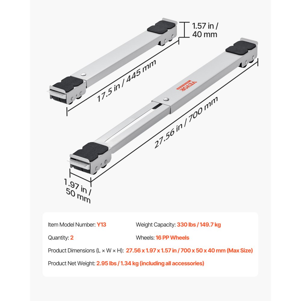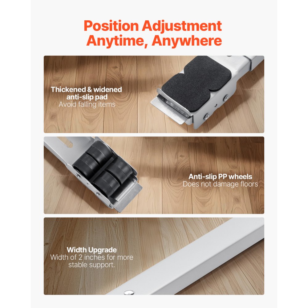 Regulowany wózek meblowy: Dzięki dwupoziomowej konstrukcji i prostej konstrukcji naszego wózka do urządzeń, montaż nie jest skomplikowany. Bez problemu można go wysunąć z 339,1 mm do 546,1 mm i idealnie mieści się pod wszystkimi meblami, od lodówek i pralek po suszarki i wiele innych!