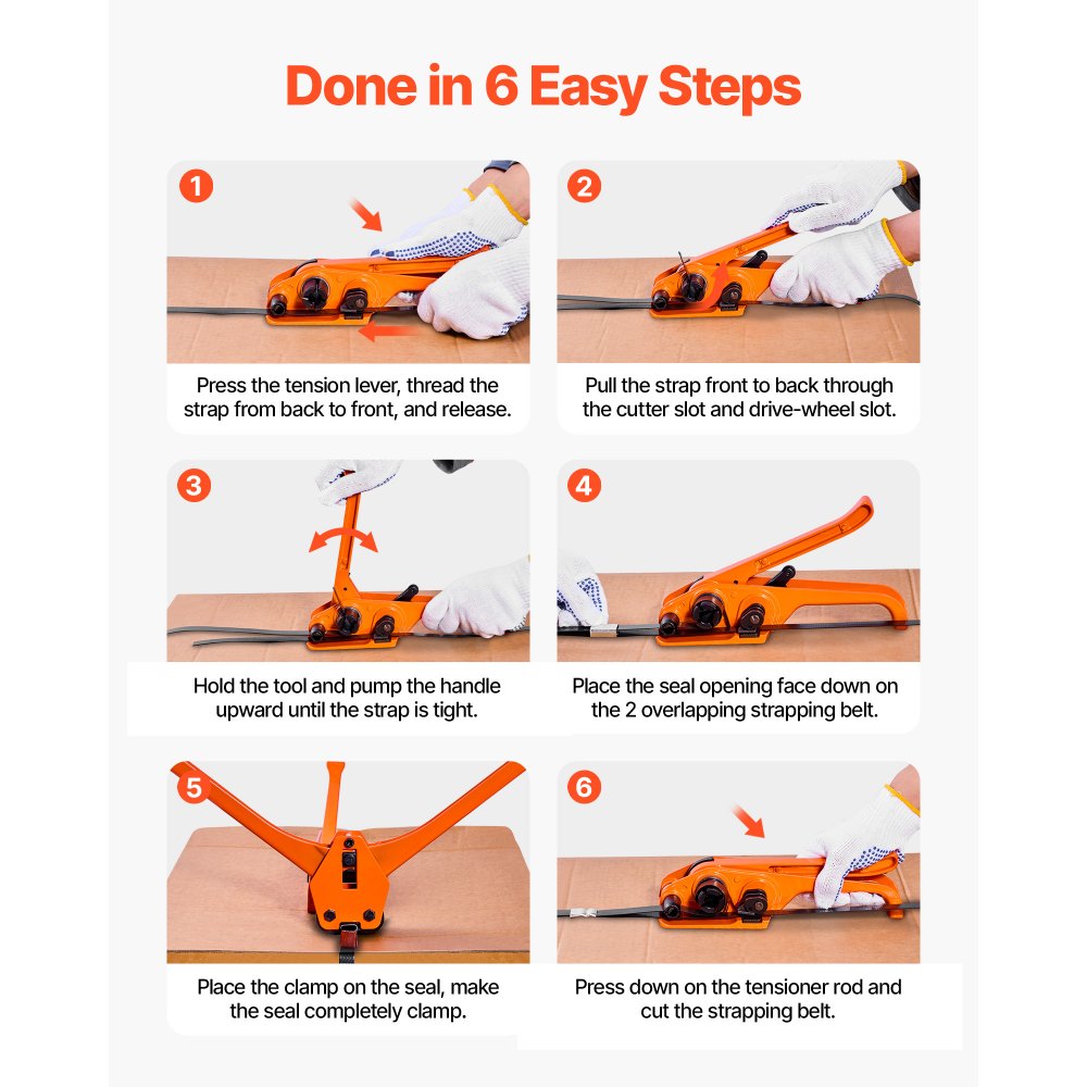 Zestaw do spinania VEVOR 6-częściowy z taśmą spinającą, ręczne narzędzie do spinania z taśmą PET 610 m, 600 klipsami metalowymi, 200 ochraniaczami krawędzi, doskonałe wyposażenie warsztatu do pakowania, transportu i przechowywania - Sprzęt dźwigowy i wyciągarki | Galaxy Sklep