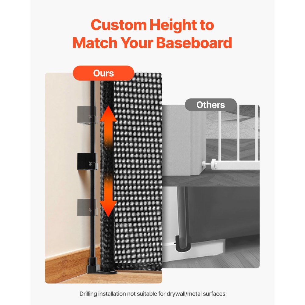 Hak zabezpieczający przed ucieczką: Zwierzęta i maluchy uwielbiają odkrywać świat – ta rozsuwana bramka dla dzieci ma wzmocniony hak, który zapobiega przedostawaniu się przez nią i uszczelnia niebezpieczne szczeliny w podłodze. Wytrzymała siatka zapewnia długotrwałą trwałość.