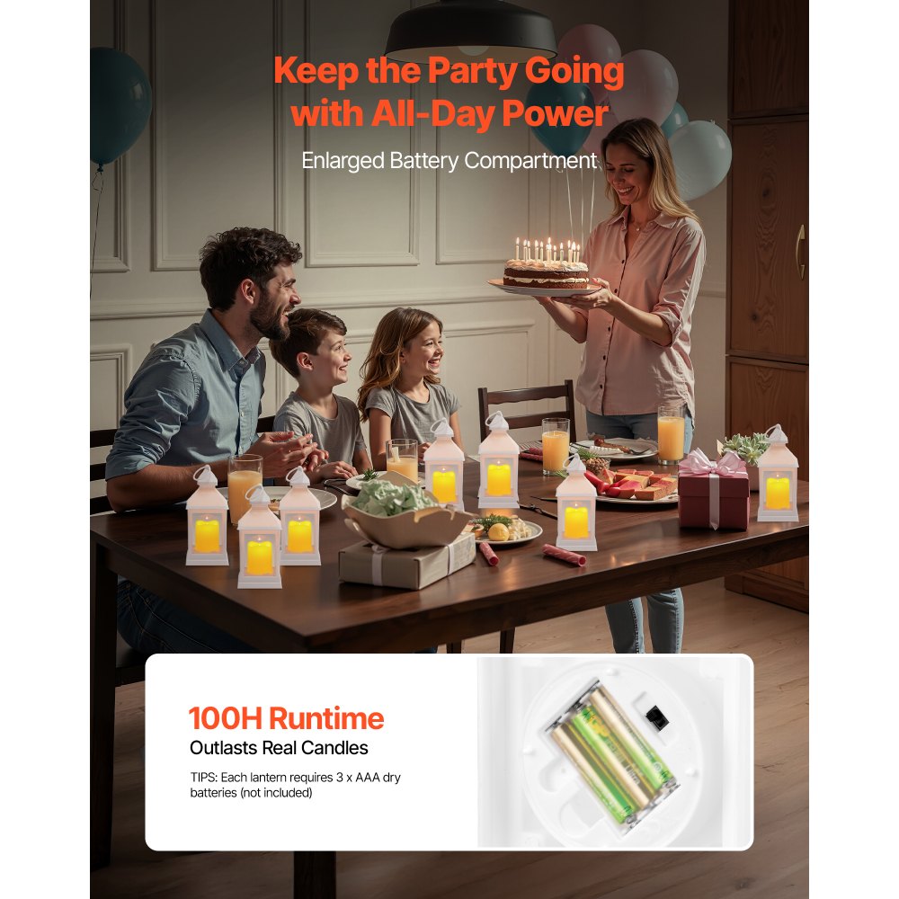 Większa pojemność baterii: Wszystkie dekoracyjne lampiony do wnętrz są zasilane 3 bateriami AAA (brak w zestawie) i oferują do 100 godzin ciągłej pracy. Nadają się do dekoracji weselnych, imprezowych lub świątecznych, redukując uciążliwości związane z częstą wymianą baterii.
