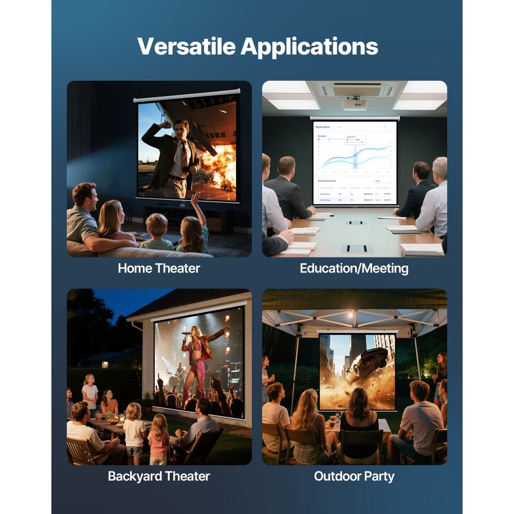Ekran projekcyjny VEVOR z ręcznym sterowaniem, 120 cali, rozdzielczość 1:1, 4K, 1080 HD, zwijany, montowany na ścianie, z linką, przenośny, zwijany ekran do kina domowego - Artykuły biurowe | Galaxy Sklep