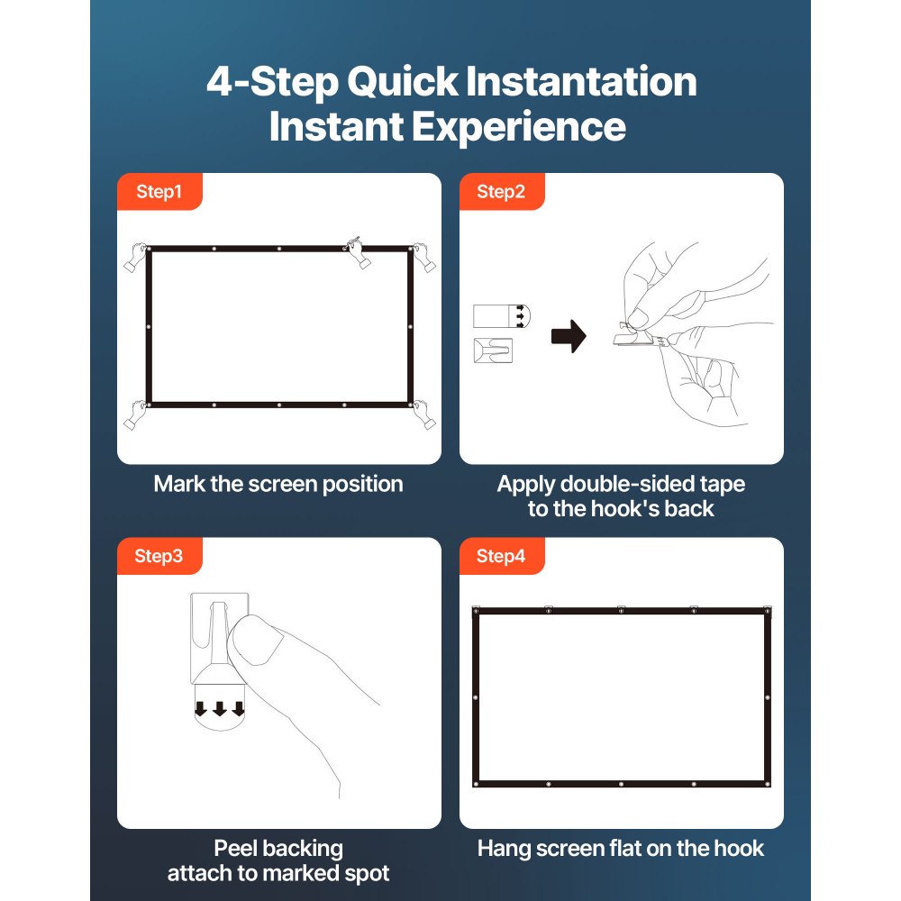 Ekran projekcyjny VEVOR z ręcznym sterowaniem, 150 cali, 16:9, 4K, 1080 HD, montowany na ścianie, z 12 haczykami i dwustronnymi taśmami klejącymi, do projekcji filmów w kinie domowym - Artykuły biurowe | Galaxy Sklep