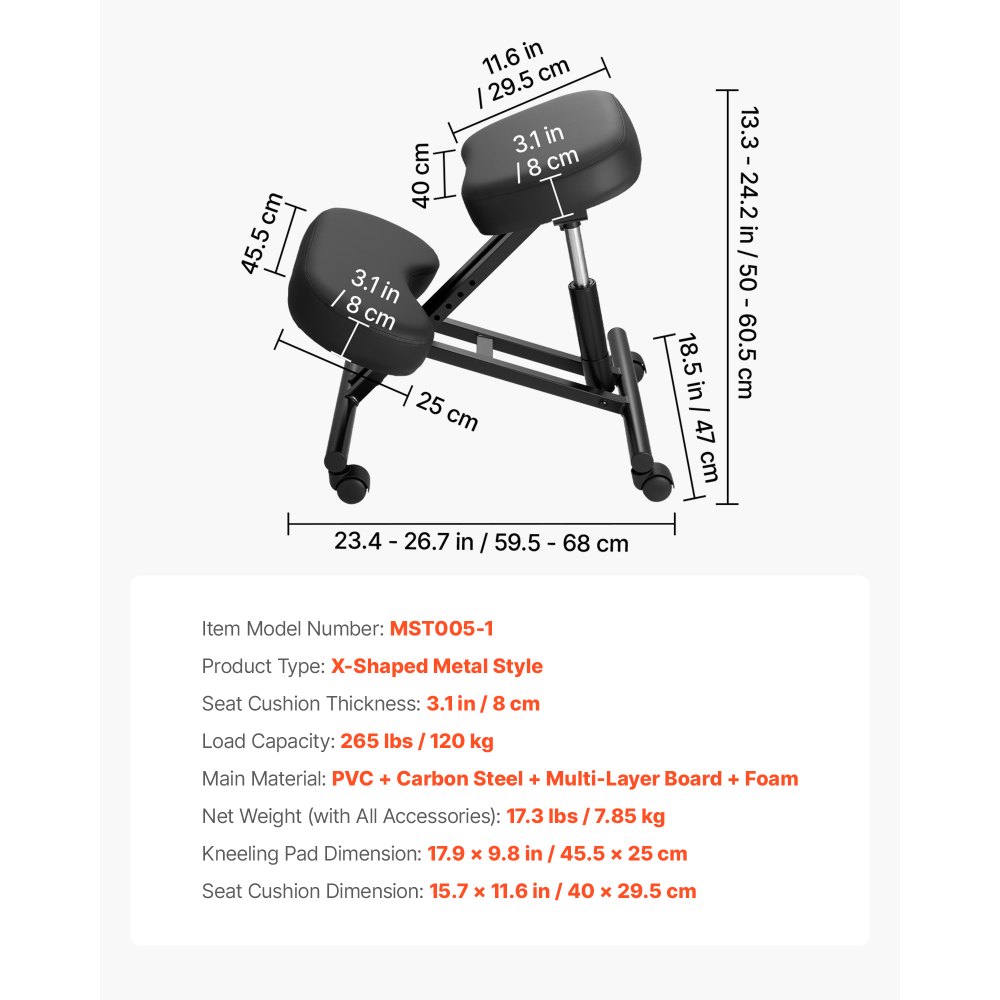 Ergonomiczny fotel klęczący z kółkami, mobilny, regulowany pod względem wysokości fotel klęczący w kształcie litery X z grubymi poduszkami piankowymi, zapewniający ulgę szyi i pleców, do domu, biura i medytacji, czarny - Artykuły biurowe | Galaxy Sklep