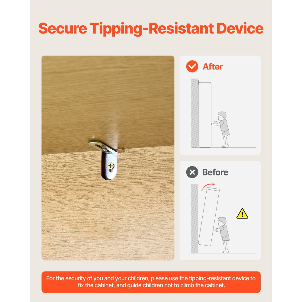 Bezpieczna i stabilna: Nasza komoda charakteryzuje się dużą nośnością i stabilnością. Wytrzymuje obciążenie do 91 kg (200 funtów). Zabezpieczenie przed przewróceniem zapewnia dodatkowe bezpieczeństwo i stabilność. Przed użyciem należy zamontować zabezpieczenie przed przewróceniem.