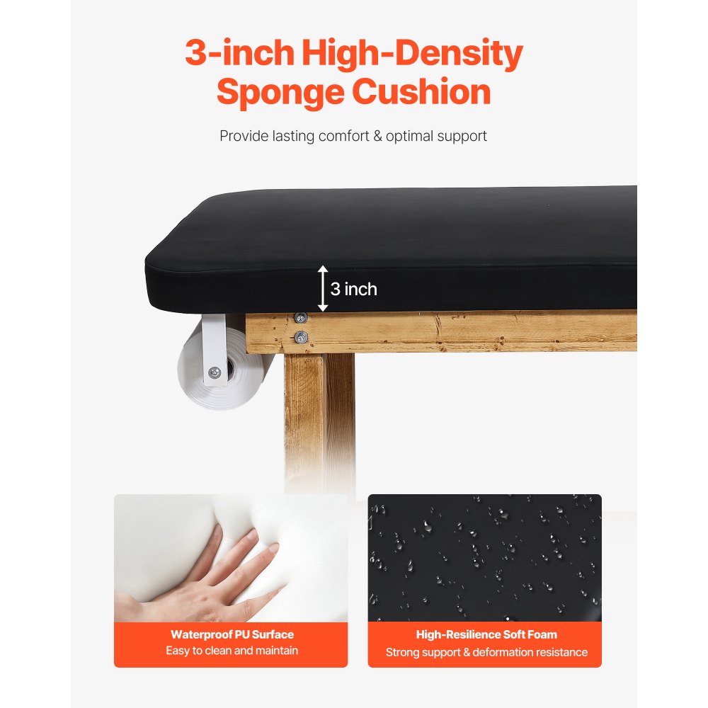 Trwała i stabilna: Dzięki solidnej drewnianej ramie i powłoce odpornej na korozję ta kozetka do badań wytrzymuje obciążenie do 227 kg, co gwarantuje długą żywotność, a także stabilne i niezawodne użytkowanie dla osób o różnych typach budowy ciała.