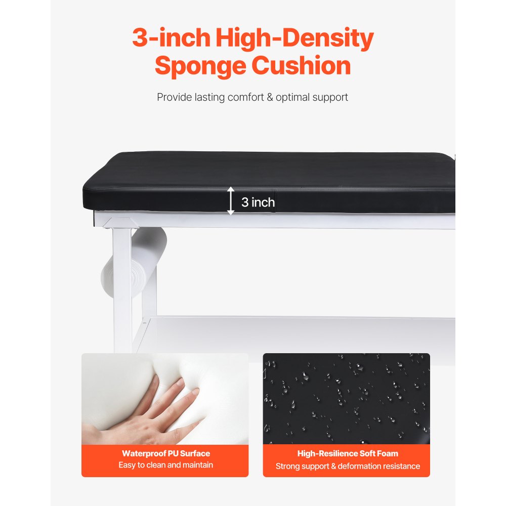 Większy komfort: Nasza leżanka do badań jest wyposażona w poduszkę z pianki o wysokiej elastyczności i grubości 7,6 cm, która równomiernie rozkłada nacisk, zapewniając doskonałe podparcie i komfort podczas badania. Wodoodporna powierzchnia z poliuretanu jest również łatwa w czyszczeniu i konserwacji.