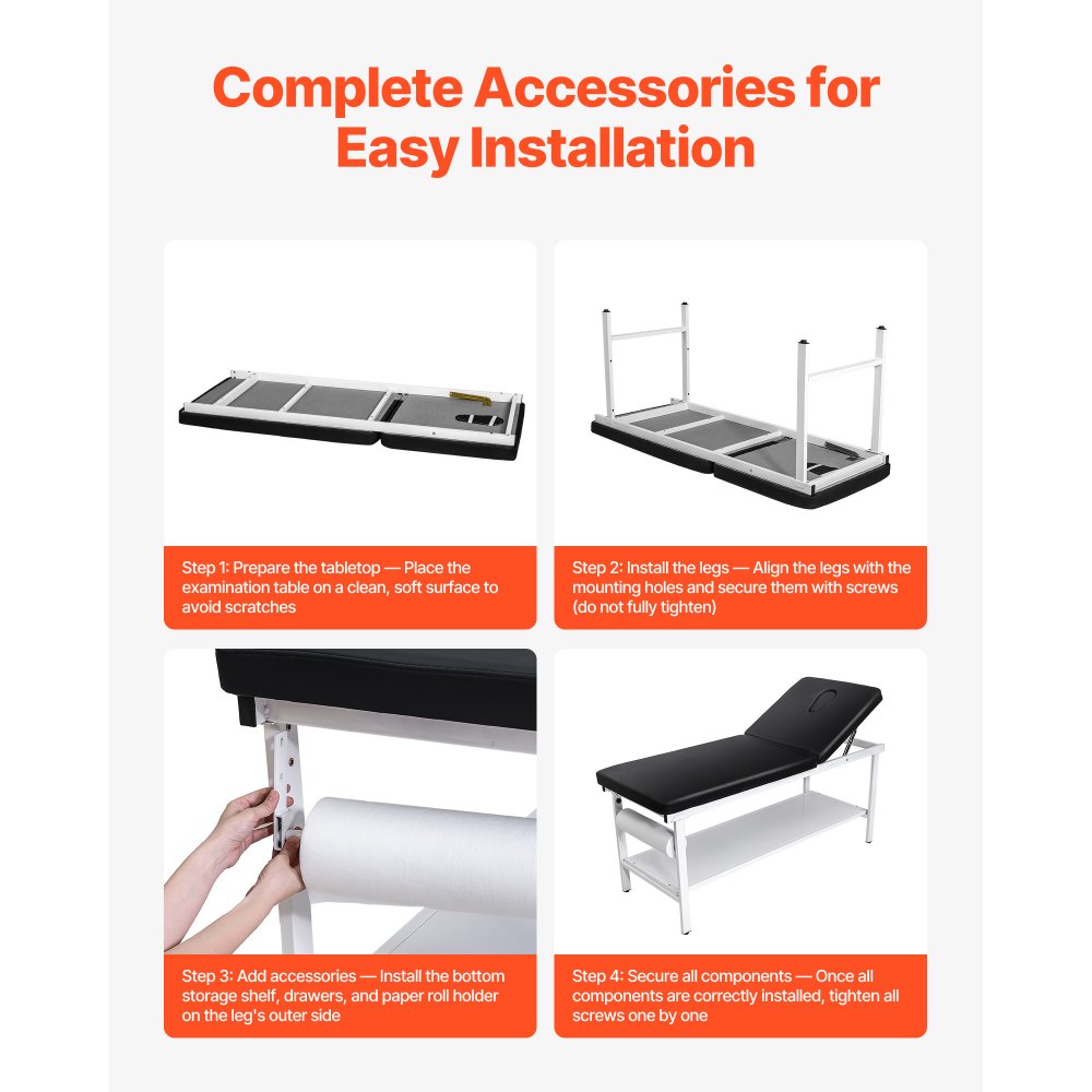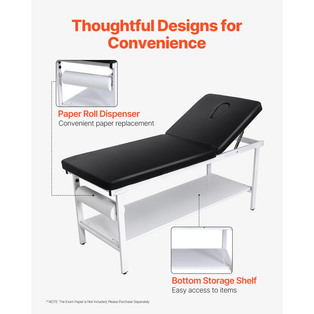 Kozetka do badań VEVOR, 227 kg, rozkładana kozetka 1855x705x815 mm, kozetka szpitalna z regulowanym oparciem (0°–40°) i uchwytem na papier toaletowy, kozetka do badań dla szpitali, klinik i ośrodków rehabilitacyjnych - Artykuły biurowe | Galaxy Sklep