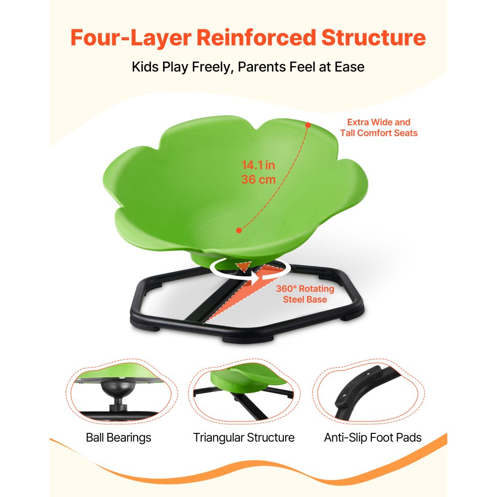 Krzesło obrotowe dla dzieci, sensoryczne krzesło obrotowe, cylindryczne, udźwig 100 kg, zabawka sensoryczna z antypoślizgową metalową podstawą, wspomaga koordynację, równowagę i koncentrację, kolor zielony - Artykuły biurowe | Galaxy Sklep