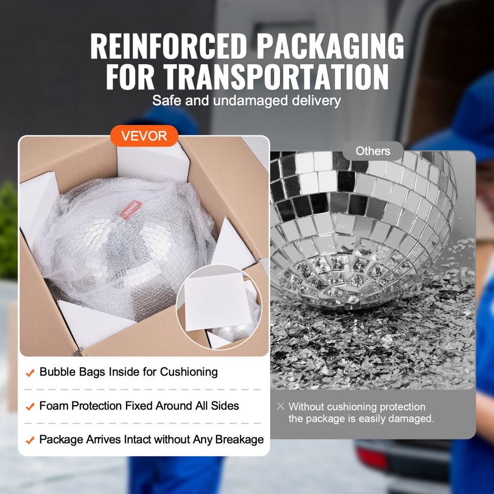 Bezpieczna wysyłka: Pakujemy Twoją kulę dyskotekową z najwyższą starannością. Jest ona owinięta folią bąbelkową i ma piankowe wzmocnienia na rogach, aby chronić ją podczas transportu, więc dociera błyskawicznie!