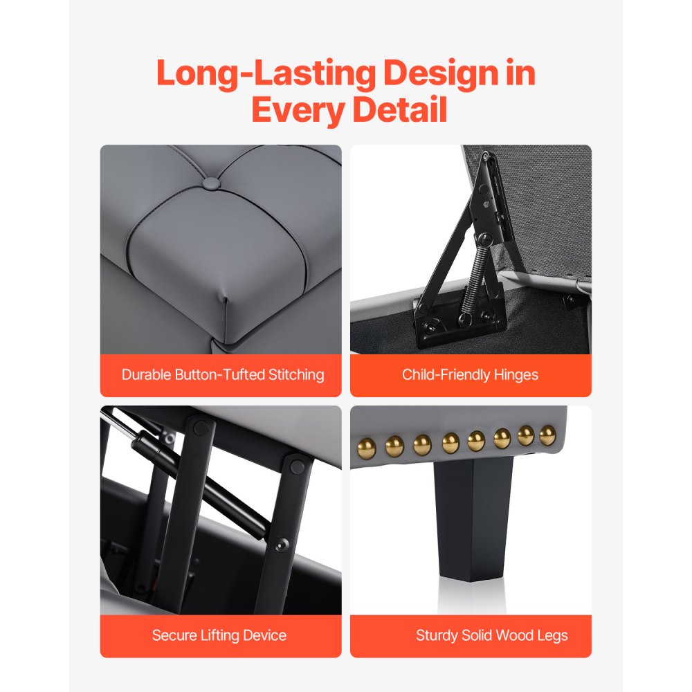 Kwadratowy skórzany puf ze schowkiem, tapicerowany stolik kawowy z pikowanymi guzikami i podnoszonym i składanym blatem, skóra PU z gąbką o wysokiej gęstości do salonu i sypialni, szary - Artykuły biurowe | Galaxy Sklep