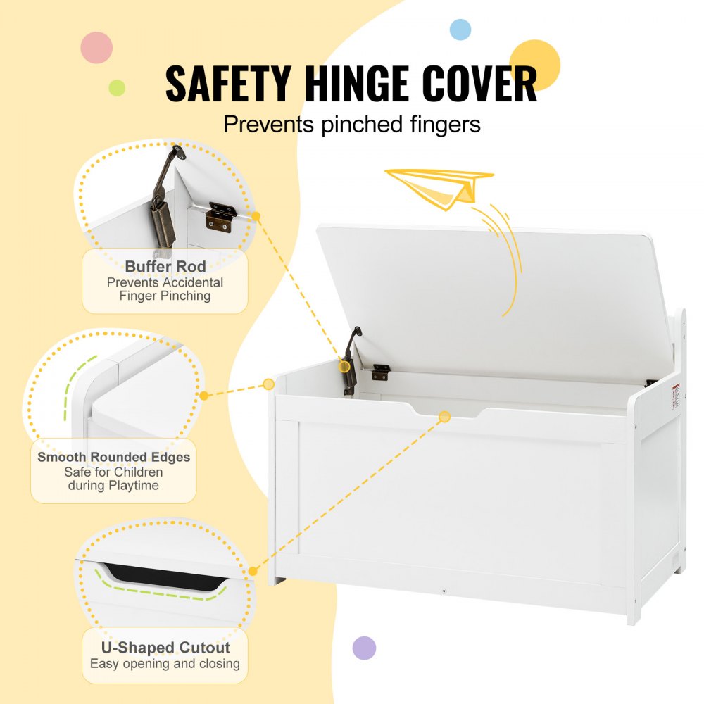 Ławka dziecięca VEVOR, ławka z miejscem do przechowywania, skrzynia na zabawki dla dzieci, schowek na zabawki, skrzynia na zabawki z zawiasową pokrywą i oparciem, 830 x 455 x 609 mm, biała - Artykuły biurowe | Galaxy Sklep