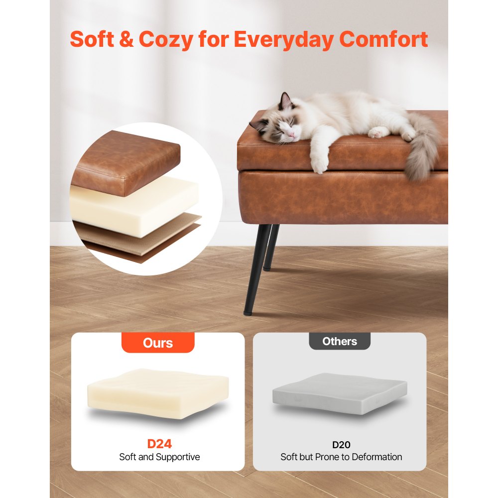 Ławka pufowa VEVOR (40 x 120 x 45 cm) wykonana ze skóry ekologicznej z metalowymi nogami i miejscem do przechowywania, tapicerowana ławka na buty o udźwigu 300 kg, nowoczesna ławka do łóżka, sypialni, salonu i jadalni, brązowa - Artykuły biurowe | Galaxy Sklep