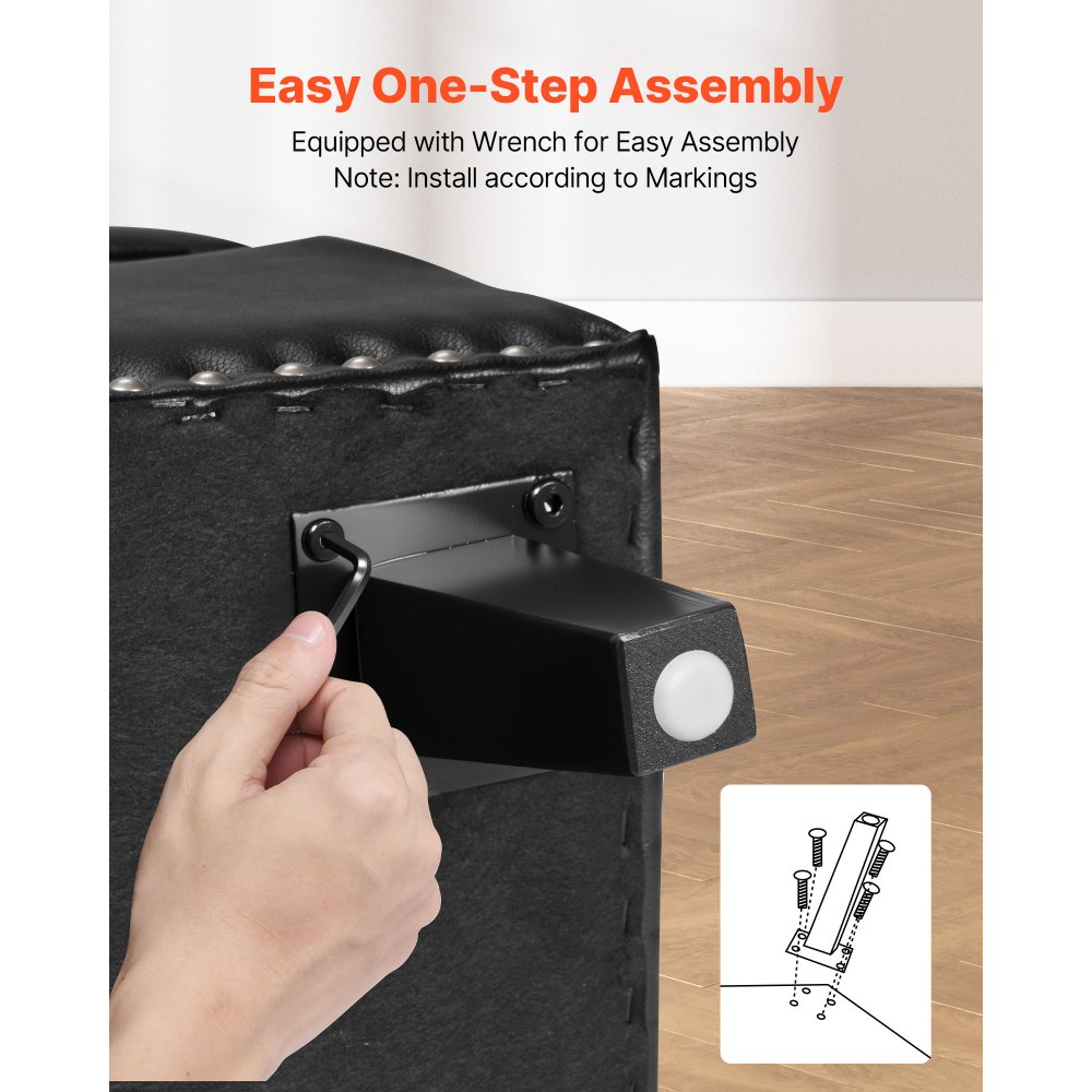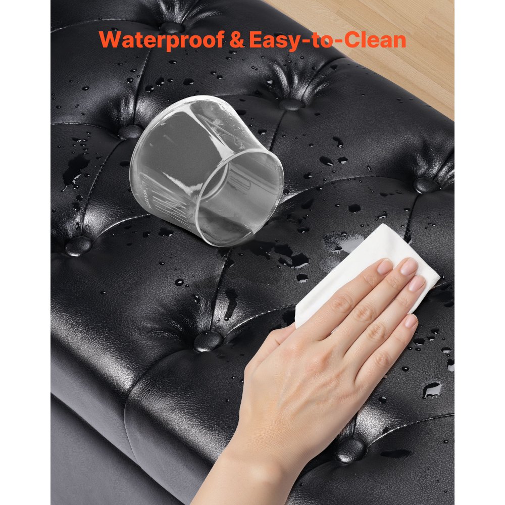 Ławka pufowa VEVOR (415 x 1305 x 440 mm) wykonana ze skóry PU z drewnianymi nogami, miejscem do przechowywania i przeszyciami, nowoczesna ławka na buty o udźwigu 300 kg, ławka do łóżka, ławka do sypialni i salonu, czarna