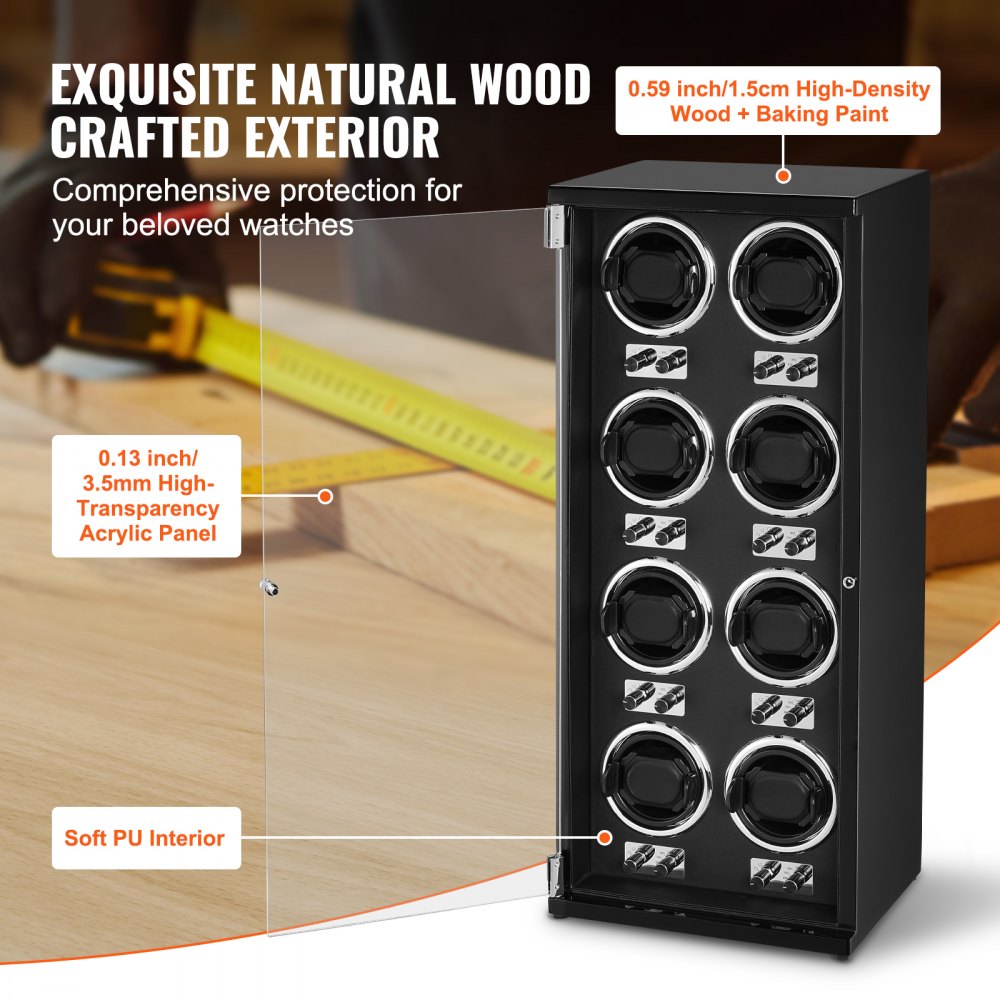 Nakręcarka do zegarków VEVOR, automatyczna nakręcarka do zegarków, nakręcarka do zegarków automatycznych, automatyczna nakręcarka z miejscem na 8 zegarków, oświetlenie LED, regulowana długość paska: 150-207 mm