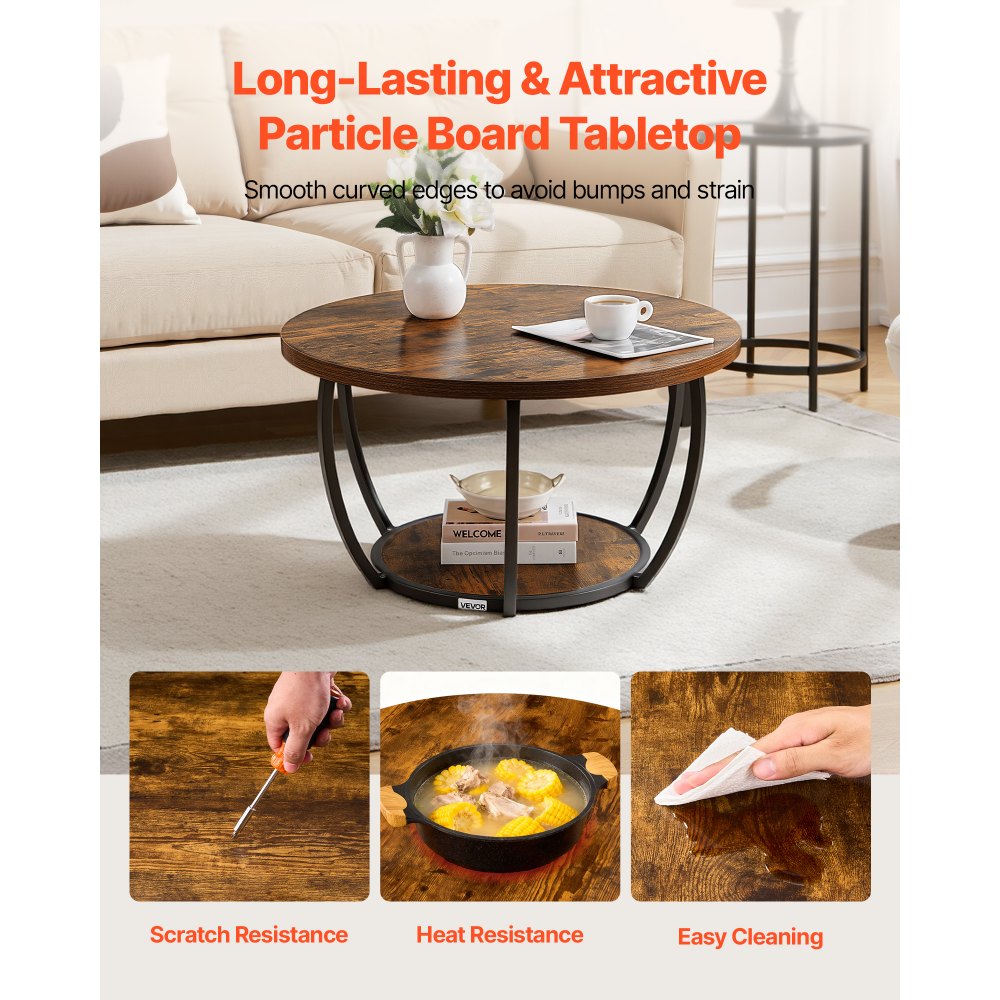Stabilne podparcie: Stolik kawowy z zakrzywioną metalową ramą udźwignie do 34,9 kg (77 funtów). Wykończenie emalią chroni przed korozją i rdzą; zaokrąglone krawędzie blatu z płyty wiórowej zapobiegają uderzeniom, a antypoślizgowa podstawa z pianki EVA gwarantuje, że blat i półki pozostaną na swoim miejscu.