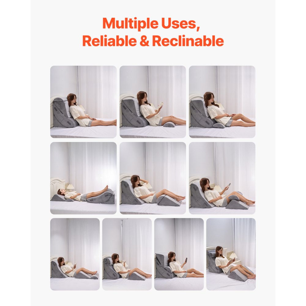 Poduszka klinowa ortopedyczna VEVOR, 4-częściowa, pod nogi, szyję i ramiona, przeciwbólowa, przeciwzgagowa, przeciw chrapaniu, ułatwiająca siedzenie w łóżku, ciemnoszara