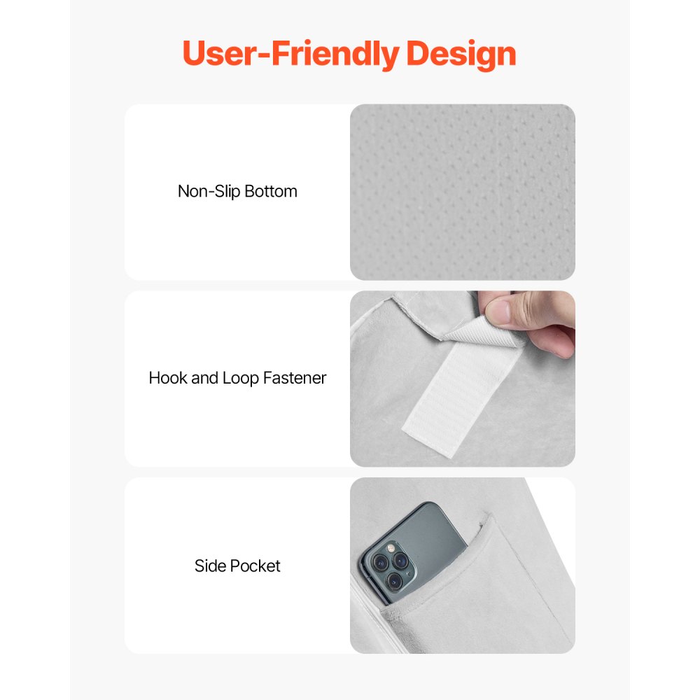 Przemyślana konstrukcja: Spód ma stabilną i antypoślizgową konstrukcję, boczna kieszeń jest wygodna do przechowywania małych przedmiotów, a zapięcie na rzep umożliwia regulację wysokości poduszki, dzięki czemu możesz cieszyć się całą gamą przemyślanych doświadczeń dzięki tej ortopedycznej poduszce klinowej do łóżka.