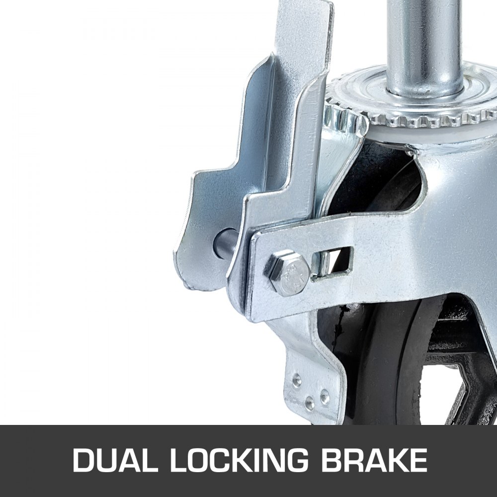 【PODWÓJNY MECHANIZM BLOKUJĄCY】- Mechanizm blokujący umożliwia jednoczesne zablokowanie koła i ramienia obrotowego, co jest niezwykle istotne dla bezpieczeństwa i stabilności.