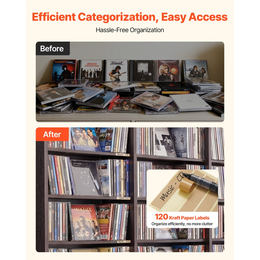 Schludne i zorganizowane przechowywanie: Dołączone etykiety z papieru pakowego pozwalają na indywidualne opisanie każdej przegródki. Dzięki temu Twoje kolekcje zawsze będą pod ręką, a Twoja kolekcja multimediów pozostanie uporządkowana.