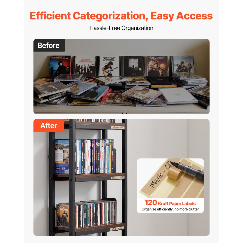 Schludne i zorganizowane przechowywanie: Dołączone etykiety z papieru pakowego pozwalają na indywidualne opisanie każdej przegródki. Dzięki temu Twoje kolekcje zawsze będą pod ręką, a Twoja kolekcja multimediów pozostanie uporządkowana.