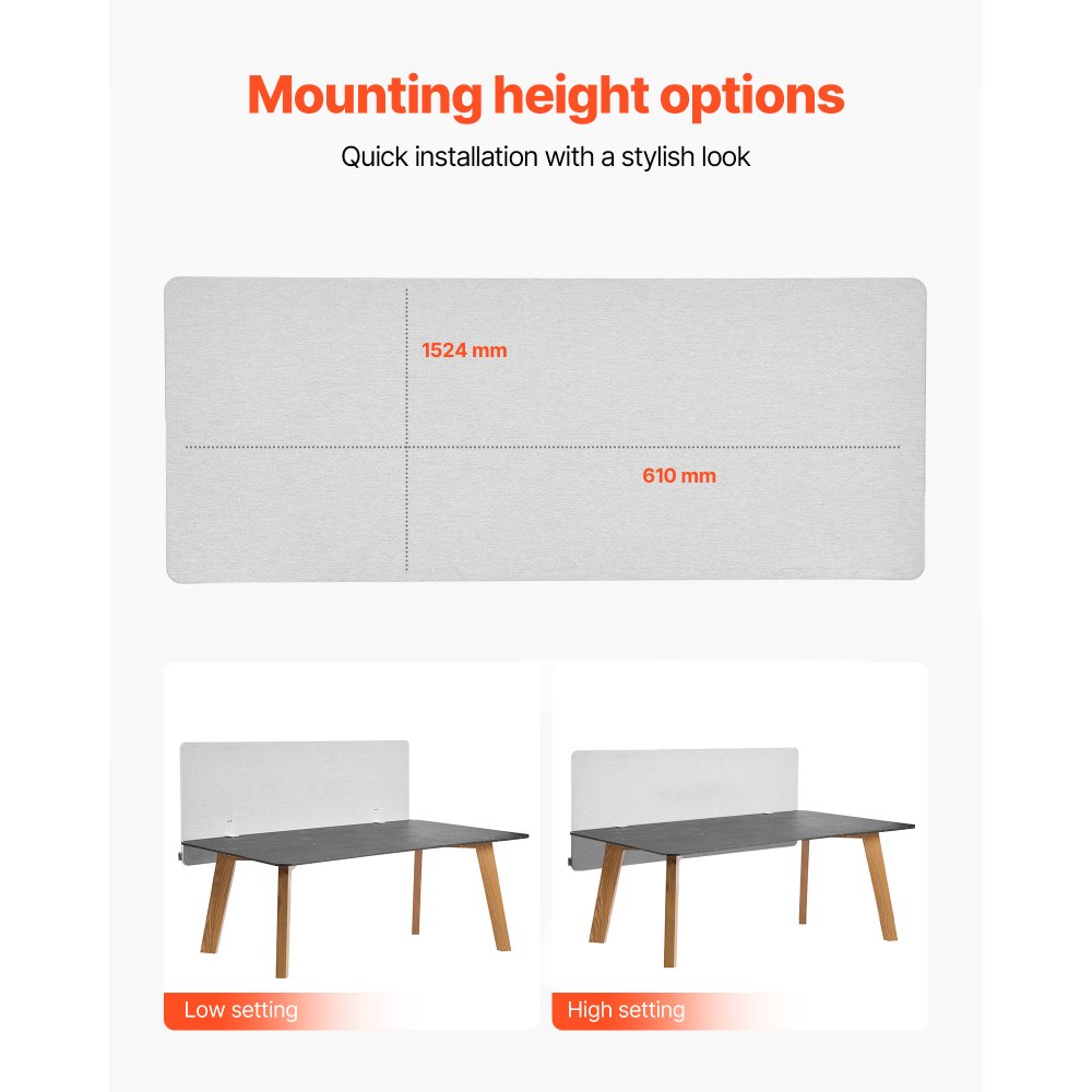 Lepsza prywatność: Przekładka biurkowa VEVOR (1524 x 610 mm) skutecznie redukuje rozpraszacze wizualne, chroni prywatność oraz poprawia koncentrację i wydajność pracy. Z łatwością stwórz bardziej prywatną przestrzeń do pracy, nauki lub relaksu.