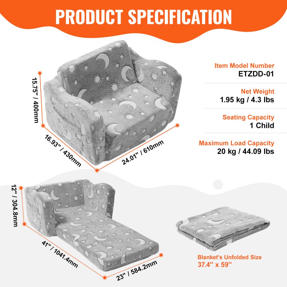 Składana sofa dziecięca Sofa dziecięca 610 x 430 x 400 mm Sofa dziecięca Sofa dziecięca Sofa miękka Sofa do zabawy Sofa przytulna dla 1 dziecka Fotel dziecięcy Meble dziecięce Fotel dziecięcy Szary Fotele do spania 20 kg Funkcja łóżka